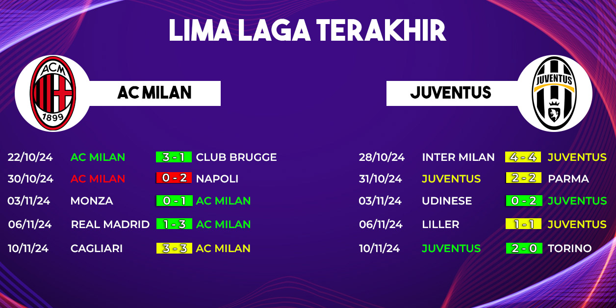 Berbeda dengan Milan, Juventus menunjukkan performa yang lebih stabil. Dalam dua pertandingan terakhir, Bianconeri bermain imbang 1-1 melawan Lille di Liga Champions dan meraih kemenangan 2-0 atas Torino dalam derby Serie A.
