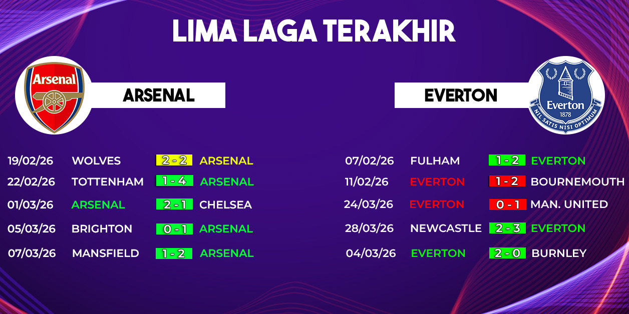 Dari lima pertemuan terakhir tersebut terlihat bahwa Arsenal lebih dominan dengan tiga kemenangan, sementara Everton hanya sekali menang dan satu pertandingan berakhir imbang.