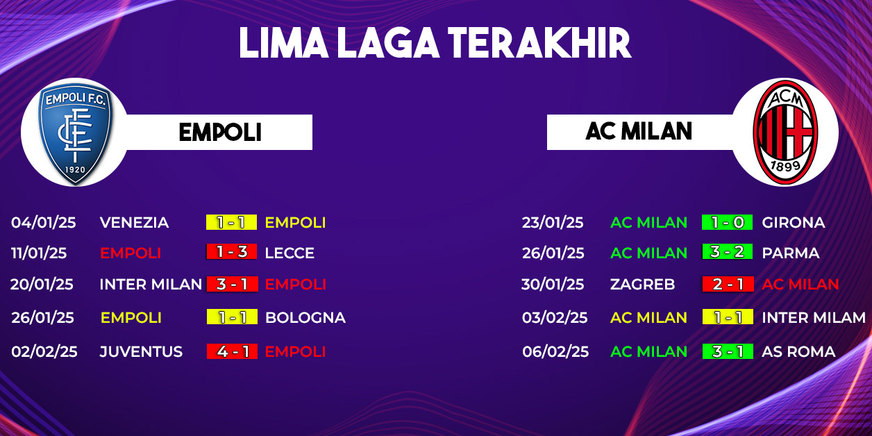 Secara statistik, Milan sangat superior dalam pertemuan melawan Empoli. Dalam sembilan laga terakhir di Serie A, Milan tak terkalahkan dengan catatan tujuh kemenangan dan dua hasil imbang. Bahkan dalam tiga pertemuan terbaru, Rossoneri selalu menang tanpa kebobolan.