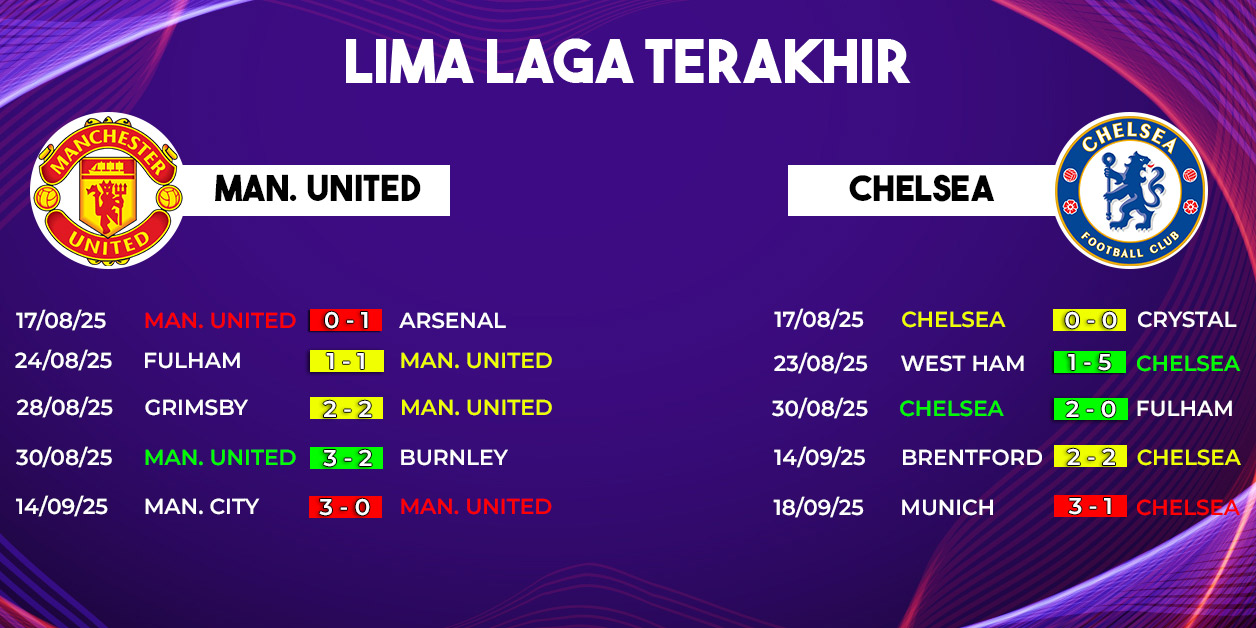 Old Trafford sendiri dikenal sebagai stadion angker bagi tim tamu, namun Chelsea beberapa kali berhasil mencuri poin di markas Setan Merah. Dengan kondisi performa MU yang belum stabil, laga kali ini bisa menjadi kesempatan emas bagi Chelsea untuk kembali membuat kejutan.