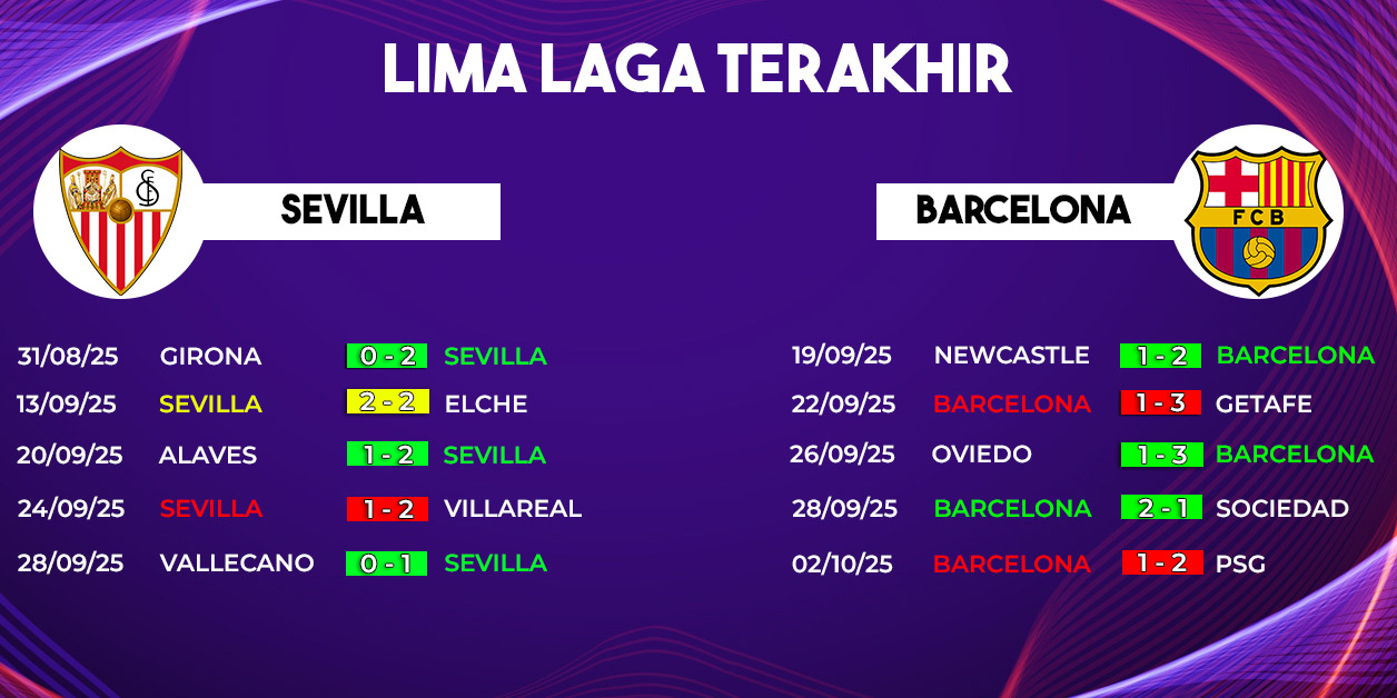 Namun, ada satu catatan penting yang masih membayangi tim Andalusia ini — performa kandang yang belum stabil. Dalam tiga laga terakhir di Ramon Sanchez-Pizjuan, Sevilla belum sekalipun meraih kemenangan. Dukungan suporter sendiri tentu diharapkan menjadi faktor pembeda ketika menghadapi raksasa Catalan.